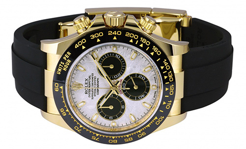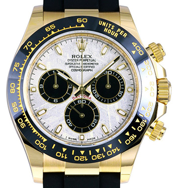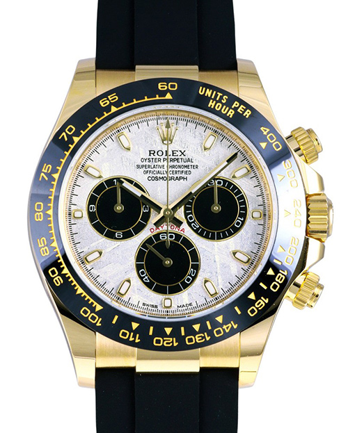 ケース素材: イエローゴールドYG ブレス素材: ラバー ブレスタイプ: ラバーブレス ベゼル: タキメーター 風防: サファイアクリスタルガラス ケース径: 40mm ケース厚 : 12.5mm 防水: 100m ムーブメント: 自動巻き クロノメーター キャリバー: Cal.4130 振動数 : 28,800振動 パワーリザーブ: 72時間